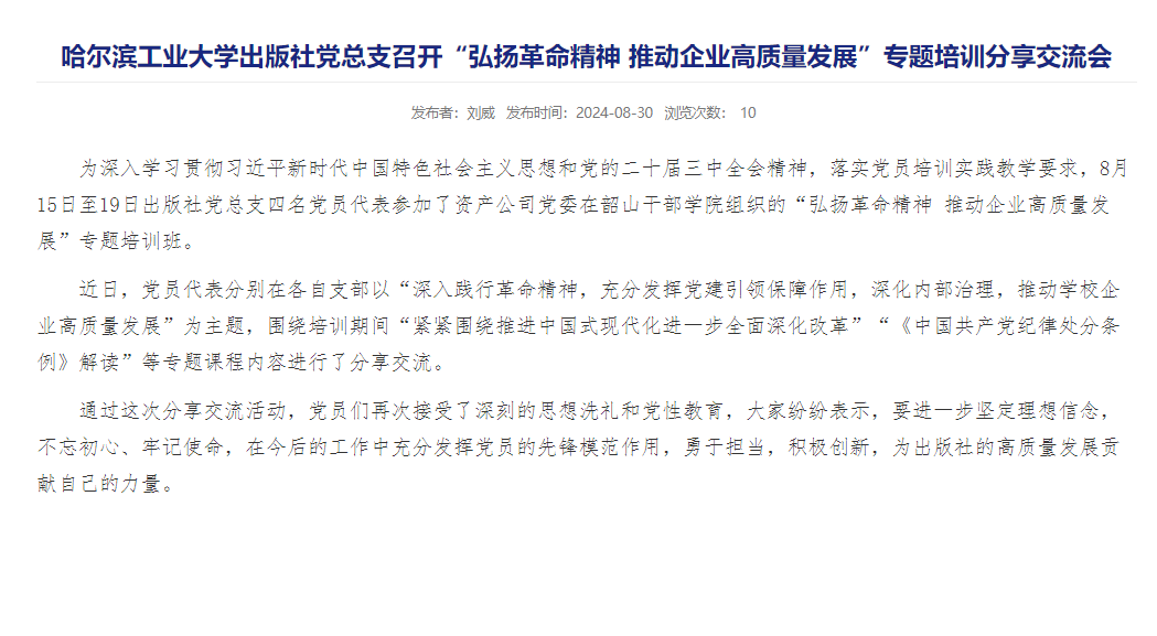 • 02/ 哈爾濱工業大學出版社黨總支召開“弘揚革命...